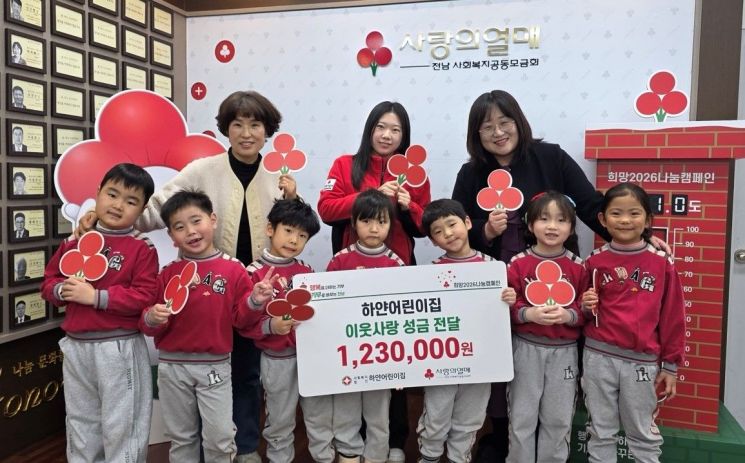 이미애 전남 사랑의열매 모금팀 주임은 "어린이집과 학부모, 아이들이 함께 만들어낸 기부라는 점에서 지역사회에 큰 울림을 준다"며 "아이들의 작은 손으로 시작된 나눔이 건강한 기부문화 확산으로 이어지길 기대한다"고 말했다.