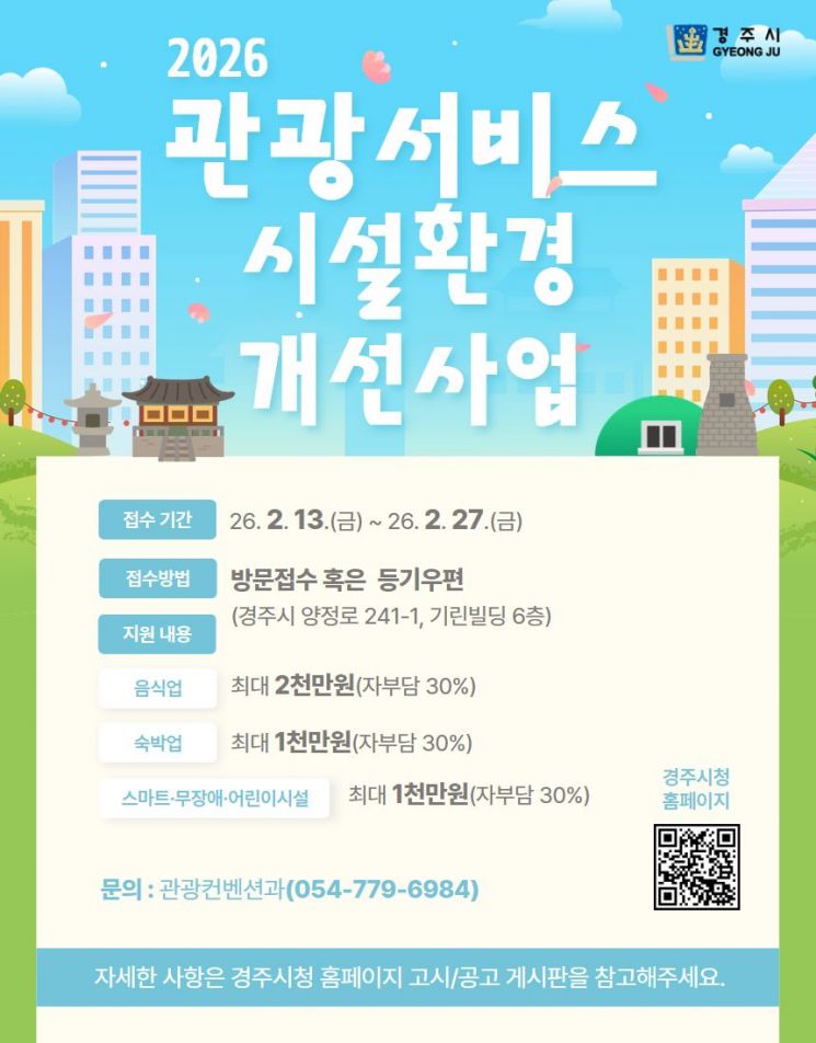 정유선 경주시 관광컨벤션과장은 "이번 지원사업을 통해 관광서비스 기반을 한층 강화하고, 방문객들이 보다 쾌적한 환경에서 양질의 관광서비스를 누릴 수 있도록 적극 지원하겠다"고 말했다.