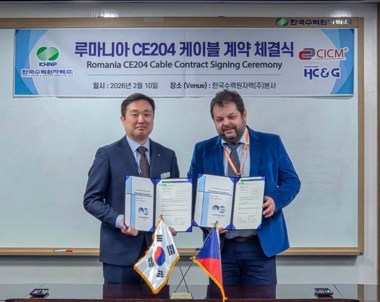 한수원은 10일 본사에서 체코 케이블 전문기업 CICM과 루마니아 삼중수소제거설비 건설사업에 필요한 케이블 기자재 공급 계약을 체결했다고 밝혔다.