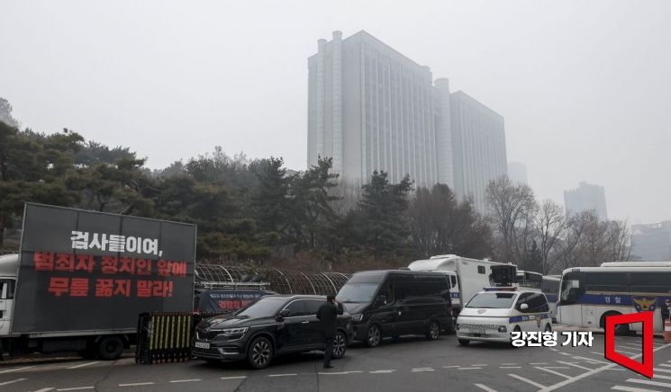 윤석열 전 대통령의 특수공무집행방해 및 직권남용권리행사방해 등 혐의 사건 선고기일인 16일 서울 서초구 서울중앙지방법원 출입이 통제되고 있다. 2026.1.16 강진형 기자