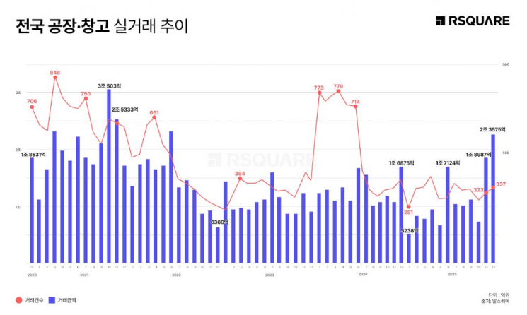 알스퀘어 리서치센터는 "지난해 공장·창고 매매 시장은 우량 자산을 중심으로 투자 수요가 꾸준히 증가한 해"라며 "12월에 성사된 연중 최대 거래는 침체 국면 속에서도 프라임 물류 자산에 대한 투자 심리가 회복 중임을 보여주는 상징적 사례"라고 평가했다.