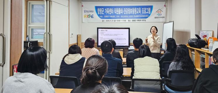 동신대는 앞서 지난달 전남 전남지체장애인협회 화순군지회와 협력해 '화순군 지체장애인 및 관련 기관 임직원 대상 건강정보 활용 교육 프로그램'을, 함평군 가족센터와 협력해 '건강정보 활용 역량 강화 교육'을 진행했다. 최근에는 강진군청 통합돌봄지원 담당 공무원을 대상으로 건강정보 문해력 교육을 실시했다.