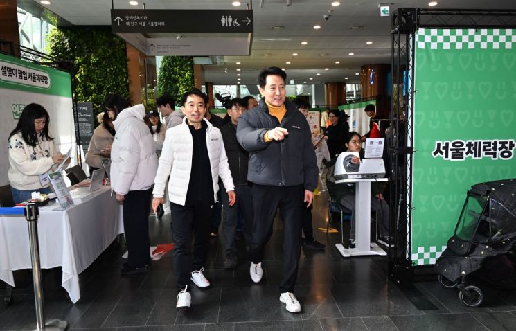 오세훈 서울시장은 이날 시청 1층 로비에서 열리고 있는 설맞이 서울체력장 파업과 서울갤러리 현장을 둘러보고 시민들과 새해 인사를 나눴다.