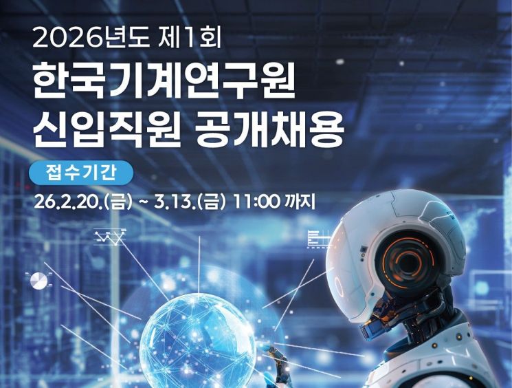한국기계연구원(기계연)은 '2026년 제1회 신입직원 공개채용'으로 연구·행정·기술직 등 3개 직군·13개 분야에서 활동할 신입직원 15명을 선발한다고 20일 밝혔다.