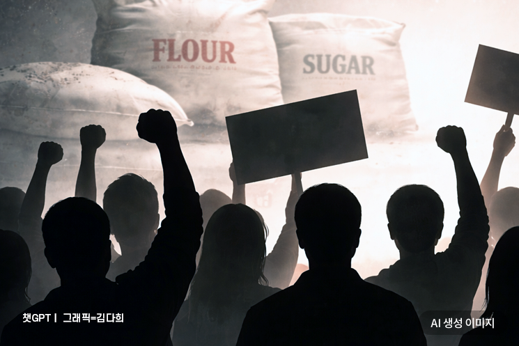협의회에 따르면 2022년부터 2025년까지 원당 가격은 7.8% 상승하는 동안 제품 가격은 37.0% 급등했다. 또 같은 기간 밀(소맥) 가격은 15.2% 하락했으나 밀가루 소비자가격은 오히려 20.3% 올랐다.