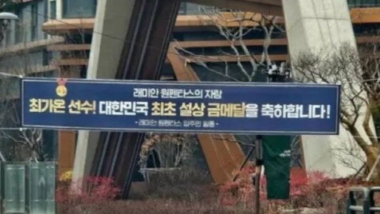 앞서 온라인 커뮤니티, 사회관계망서비스(SNS) 등에는 최가온이 거주하는 서초구 반포동 아파트 단지 축하 현수막이 옥외광고물법 위반, 민원 등으로 철거됐다는 주장이 퍼진 바 있다. 축하 현수막이 내려간 현장 사진도 게재됐으나, 이 사진은 AI 생성 이미지로 파악됐다.