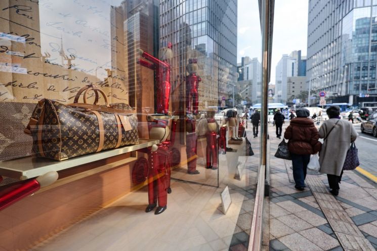 서울의 한 백화점에 루이비통 가방이 전시돼 있다. 연합뉴스