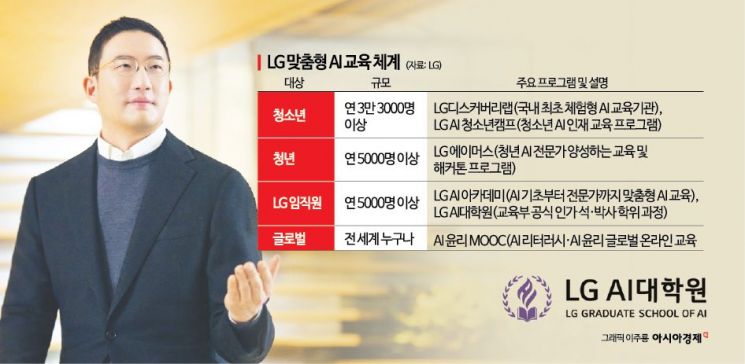 이번 대학원 개원으로 LG는 청소년 대상 'LG 디스커버리랩'과 'LG AI 청소년 캠프', 청년 대상 'LG 에이머스', 임직원 대상 'LG AI 아카데미'로 이어지는 생애주기별 맞춤형 AI 교육 체계를 완성하게 됐다. 구체적으로 LG 디스커버리랩은 연간 3만 3000명 이상의 청소년에게 무상 AI 교육을 제공하며, LG AI 청소년 캠프는 서울대와 공동으로 전국 청소년(중학교 1~3학년)을 대상으로 AI 교육을 제공하고 있다. LG 에이머스는 2030년까지 누적 5만명 이상의 청년 AI 인재 양성을 목표로 하고 있다. LG는 이 같은 체계를 통해 국내 AI 경쟁력을 높이고 혁신 생태계를 확장할 계획이다.