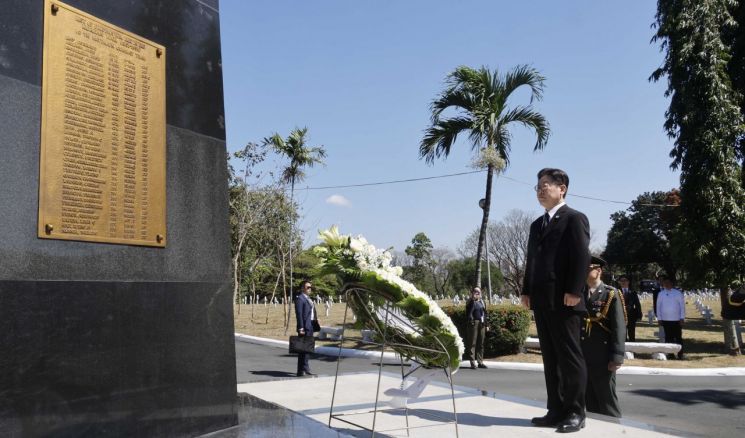 이 대통령은 이날 오전 검은색 정장과 넥타이 차림으로 마닐라 '영웅 묘지'를 찾고, 한국전 참전 기념비를 방문했다. 이 자리에는 배경훈 부총리 겸 과학기술정보통신부 장관, 조현 외교부 장관 등이 동행했다. 필리핀에서는 국방장관과 보훈처장이 함께했다.