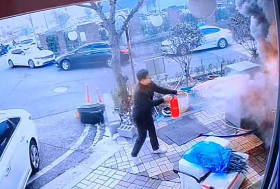 이 부부는 인근 아파트 관리사무소로 뛰어가 소화기를 빌려온 뒤 화재 진압을 시도했다. 다행히 인근 상가로의 확산을 막을 수 있었다.