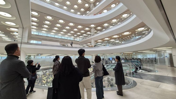 지난 6일 진행한 투어는 그룹의 연구개발과 업무 공간을 대표하는 우수 건축물 탐방의 일환으로 진행됐다. 참가자들은 이날 오전 그룹의 하이테크 연구소인 대전 '한국테크노돔'을 방문하고, 오후에는 판교 본사 사옥 '테크노플렉스'를 찾아 지하 편의시설부터 개방형 업무 공간, 옥상정원에 이르는 주요 시설과 공간 운영 방식을 확인했다.