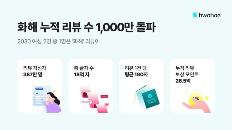 화해는 누적 리뷰 1000만건 돌파를 기념해 '천만리뷰 천만결산' 콘텐츠를 공개하고 이용자 감사 이벤트를 진행한다고 9일 밝혔다.