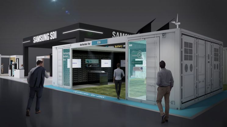 부스 한쪽에는 AI시대에 안정적이고 친환경적인 전력 운영을 위해 필수적인 에너지저장장치(ESS) 솔루션인 삼성배터리박스(SBB)의 풀 라인업이 전시된다. 삼성SDI 관계자는 "관람객들은 20피트 컨테이너 안에 수만개의 하이니켈 NCA(니켈·코발트·알루미늄) 각형 배터리셀이 가득 차 있는 SBB 1.5의 내부를 볼 수 있다"면서 "차별화된 ESS 안전 기술인 모듈 내장형 직분사 시스템도 확인할 수 있다'고 말했다.