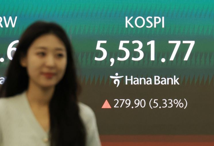 이날 코스피 지수는 전 거래일 대비 271.34포인트(5.17%) 오른 5523.21에 장을 시작했다. 외국인이 1381억원, 기관이 995억원가량 순매수했고 개인은 2291억원을 순매도했다.