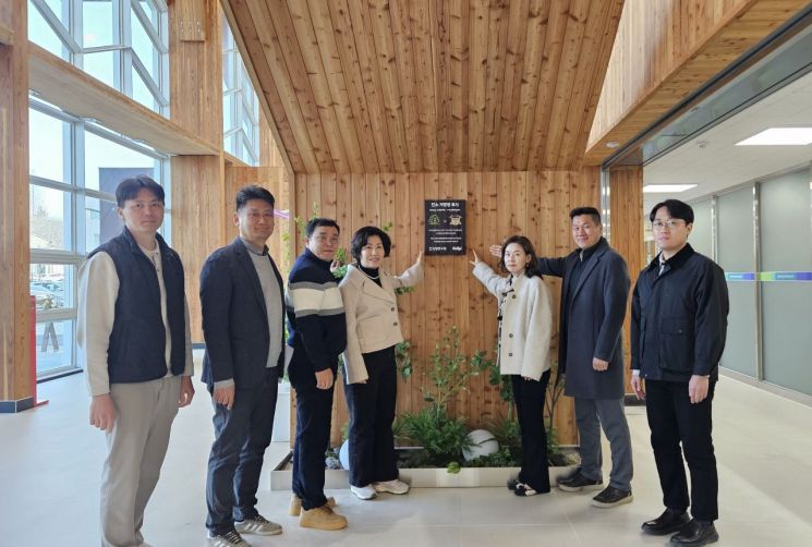 이번 인증 결과에 따르면 본 건물은 총 134㎥의 목재(구조재 120㎥·마감재 14㎥)가 사용된 것으로 확인됐다. 이를 통해 산정된 탄소 저장량은 1만 928㎏ CO₂이며, 이는 50년생 중부지방 소나무 약 2만 7,732그루가 1년간 흡수해 저장하는 이산화탄소량에 해당한다.