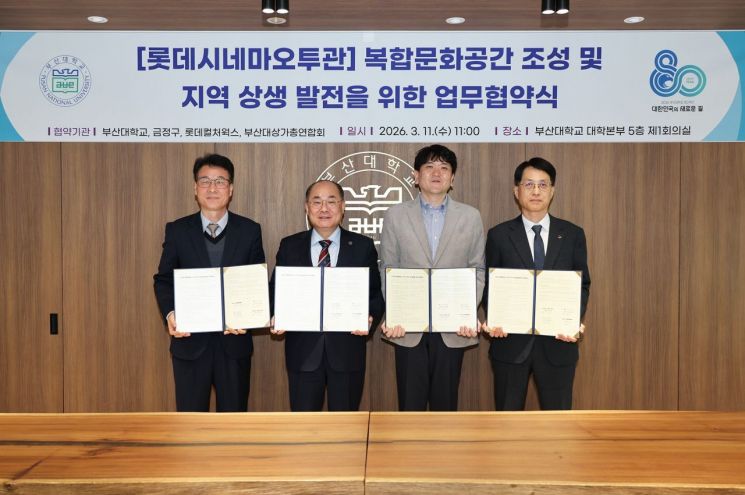 부산대는 11일 대학본부 제1회의실에서 롯데컬처웍스, 금정구, 부산대상가총연합회와 이 같은 내용을 담은 4자간 업무협약을 체결했다.