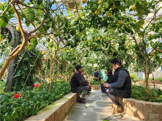 감귤류 식물 터널 속 자연휴식 공간 제공