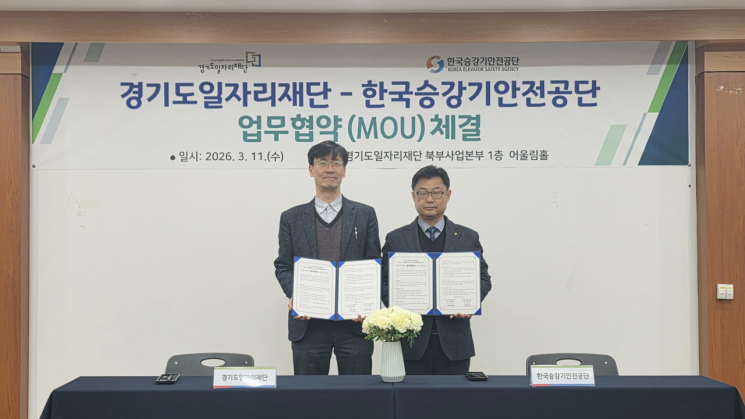 도 일자리재단은 11일 재단 북부사업본부 어울림홀에서 한국승강기안전공단과 '승강기 전문인력 양성을 통한 일자리 문제 해결 및 지역경제 활성화'를 위한 업무협약(MOU)를 체결했다고 밝혔다.