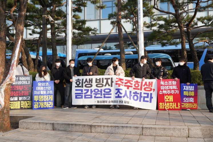 동성제약 동성제약 close 증권정보 002210 KOSPI 현재가 973 전일대비 0 등락률 0.00% 거래량 0 전일가 973 2026.04.03 15:30 기준 관련기사 "동성제약 회생은 이해관계자 '납득' 필요…정당성이 판단 기준 돼야" "동성제약 회생안 구조 논란…연 54억 이자·본사 담보 변수" 브랜드리팩터링 "동성제약 강제인가, 채권자·주주 반대는 각자 권리…쉽게 꺼낼 카드 아냐" 소액주주들은 13일 금융감독원 앞에서 집회를 열고 회사 정상화라는 명분이 기존 주주의 권리 침해를 정당화하는 수단으로 사용돼서는 안 된다고 주장했다.