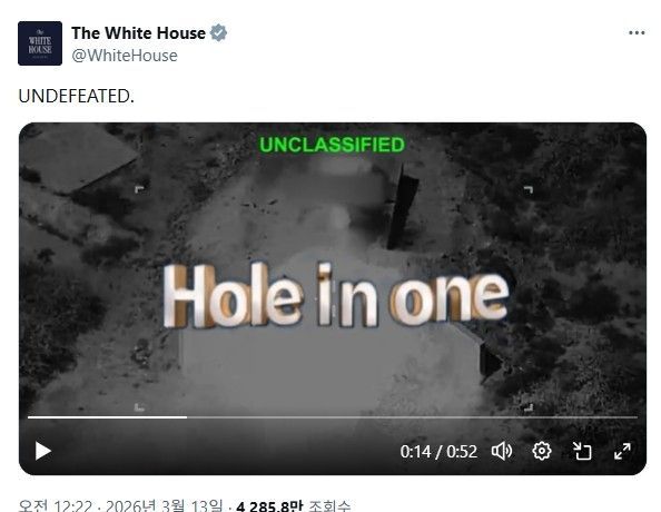 13일 미국 NBC 방송에 따르면 백악관이 이날 공식 엑스(X·옛 트위터) 계정에 공개한 영상에는 일본 닌텐도사의 '위(Wii)' 게임 화면이 등장한다.
