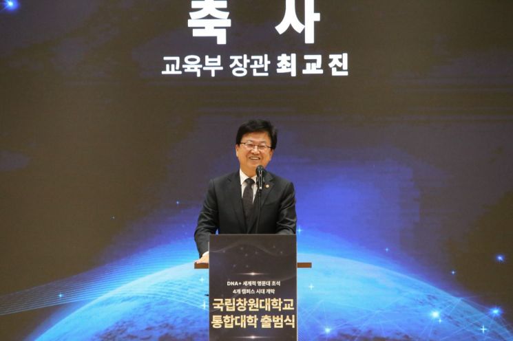 최교진 교육부 장관 "통합 국립창원대, 동남권 메가시티 산학연 거점 되길"