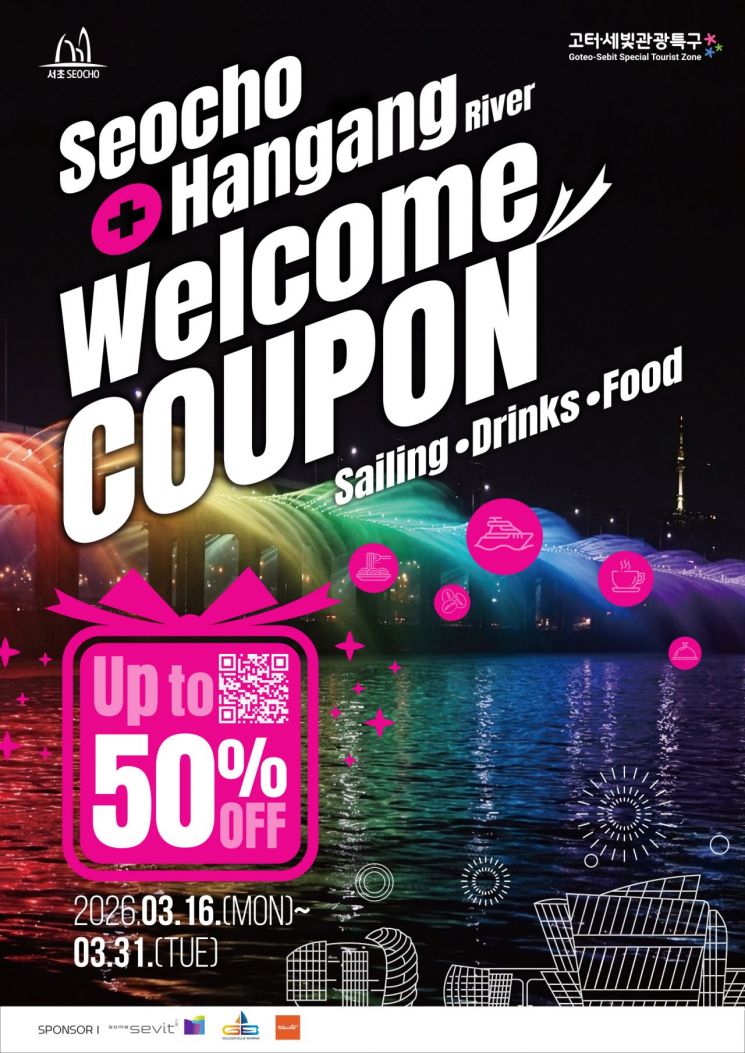이벤트는 고투몰, 반포한강공원, 피카소벽화거리 등을 방문해 인증사진을 촬영한 뒤 필수 해시태그(#seocho, #rainbowfountain 등)와 함께 개인 SNS에 게시하고, 이를 고터·세빛 관광안내센터에 제시하면 선착순 3210명에게 '서초 웰컴쿠폰'을 제공하는 방식이다.