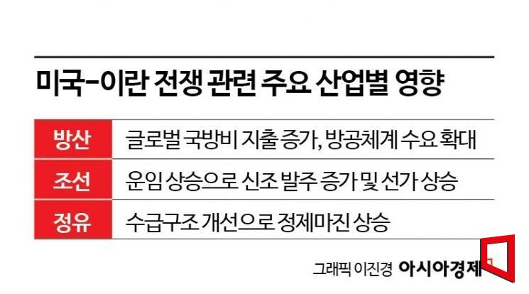 중동 전쟁의 포화 속에 유가가 치솟고, 무기 수요가 폭증하면서 방산·조선·에너지 업종이 시장의 강력한 대피처로 부상하고 있다. 지정학적 리스크가 단순한 위기를 넘어 국내 주요 산업의 수주 모멘텀과 수익성 개선으로 이어지는 양상이다.