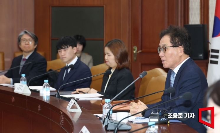 유기홍 학교폭력대책위원회 공동위원장이 16일 서울 종로구 정부서울청사에서 열린 학교폭력대책위원회 전체회의에 참석 발언하고 있다.