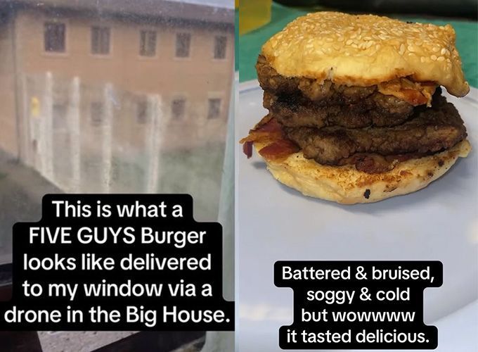 영상에서 A씨는 "드론을 통해 '빅 하우스'(Big House·교도소를 의미하는 은어) 창문으로 배달된 '파이브 가이즈' 버거"라며 교도소 내부에서 외부 음식을 받았다고 주장했다. 그는 "(버거가) 험난한 날씨를 견디며 먼 길을 돌아왔고, 벽과 창문에 몇 번이나 부딪히기도 했다"고 설명했다. 해당 영상을 접한 누리꾼들은 교도소까지의 배송 비용이 최대 600파운드(약 120만원)에 달했을 것으로 추정했다. 영국 미들랜드 지역의 교도소에서 촬영된 것으로 추정되는 이 영상은 22만회가 넘는 조회 수를 기록했지만, 현재 삭제된 상태다.
