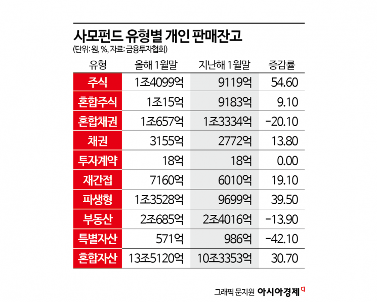 개인 사모펀드 판매잔고, 전년 동기 대비 20%↑