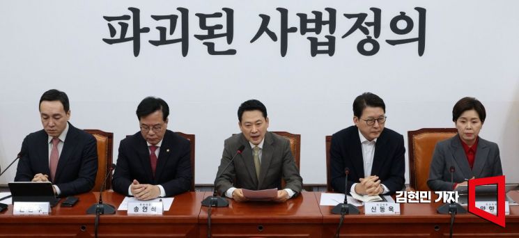 장동혁 국민의힘 대표가 19일 국회에서 열린 최고위원회의에서 발언하고 있다.