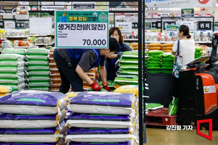 19일 한국농수산식품유통공사에 따르면 지난 18일 기준 쌀 10㎏ 평균 소매가격은 3만6214원으로 전년 대비 23.1%, 평년 대비 25.8% 상승했다. 20㎏ 기준 가격 역시 6만2951원으로 전년보다 13.7% 올랐다. 지난달 소비자물가동향에서도 쌀 가격은 전년 대비 17.7% 상승해 전체 물가 상승률(2.0%)의 약 9배에 달했다.