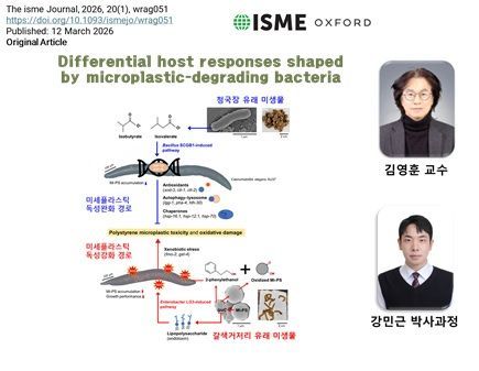 김영훈 서울대학교 농업생명과학대학 농생명공학부 교수 연구팀은 미세플라스틱 독성이 장내 세균과의 상호작용에 따라 크게 달라질 수 있음을 규명했다고 19일 밝혔다. 연구 결과는 미생물 생태 분야 국제 학술지 '아이에스엠이 저널(The ISME Journal)'에 게재됐다.