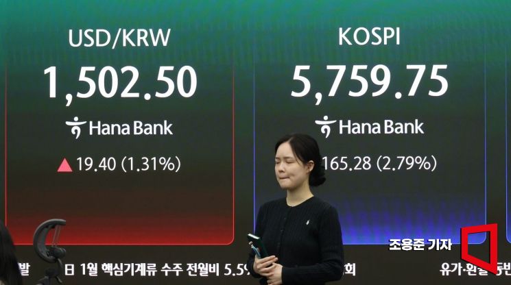 중동전쟁이 장기화 우려와 국제유가 상승으로 국내 증시는 하락, 원/달러 환율은 상승 출발한 19일 서울 하나은행 본점 딜링룸에서 직원들이 증시와 환율 등을 모니터 하고 있다. 이날 코스피는 전 거래일 대비 2.76% 내린 5761.40에 원·달러 환율은 21.9원 오른 1505원으로 장을 시작했다. 조용준 기자