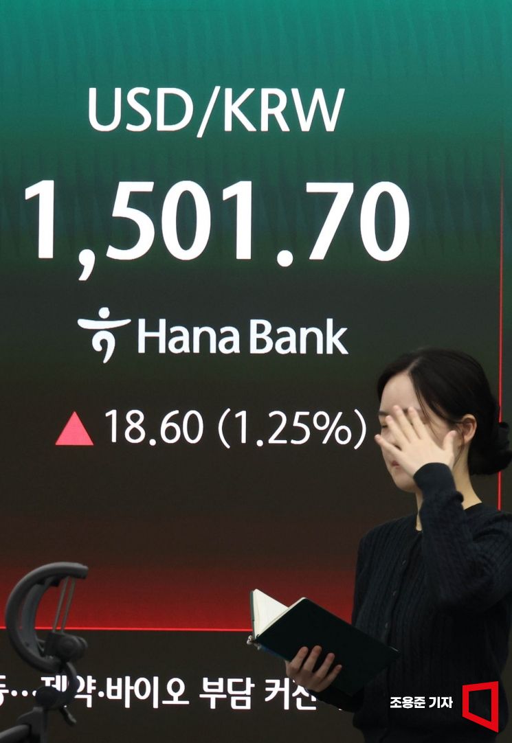 19일 서울 외환시장에서 원·달러 환율 주간 종가(오후 3시30분 기준)는 전 거래일 대비 17.9원 오른 1501.0원을 기록했다. 주간 종가 기준 2009년 3월10일(1511.5원) 이후 가장 높은 수준이다. 이날 원·달러 환율은 전날보다 21.9원 급등한 1505.0원으로 개장했다. 오전 11시34분께 1494.6원까지 내렸다가 상승 폭이 재차 확대, 오후 장에선 1500원 부근에서 오르내렸다.
