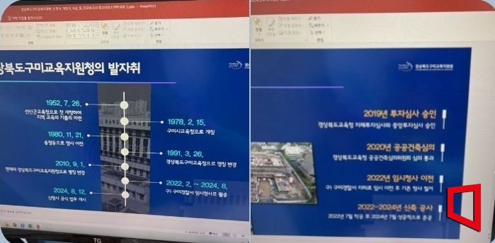 구미교육지원청 신청사는 2022년 7월 착공하여 2024년 7월 완공되기까지 약 2년의 공사 기간을 거쳐 현대적인 교육 행정 중심지로 탈바꿈했다. 이번 신청사 건립을 통해 교육 행정의 효율성을 극대화하고, 교육 가족들에게 더욱 쾌적하고 전문적인 지원 환경을 제공할 수 있게 되었다.