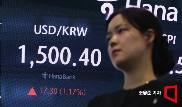 중동전쟁이 장기화 우려와 국제유가 상승으로 국내 증시는 하락, 원/달러 환율은 상승 출발한 19일 서울 하나은행 본점 딜링룸에서 직원들이 증시와 환율 등을 모니터 하고 있다. 이날 코스피는 전 거래일 대비 2.76% 내린 5761.40에 원·달러 환율은 21.9원 오른 1505원으로 장을 시작했다. 조용준 기자