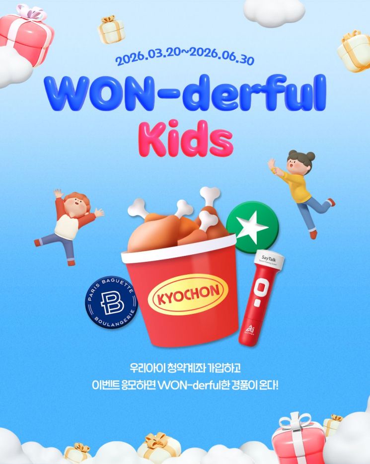 우리은행은 타행 주택청약 예·부금 전환 고객과 미성년 자녀 명의 주택청약종합저축 신규 가입 고객을 대상으로 한 "WON-derful Move" 및 "WON-derful KIDS" 이벤트를 3월 20일부터 6월 30일까지 진행한다고 20일 밝혔다.