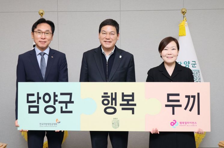 20일 담양군에 따르면 전날 군청 소쇄원실에서 한국지방재정공제회, ㈜행복나래와 함께 '담양군 행복두끼 프로젝트' 전달식을 열었다.