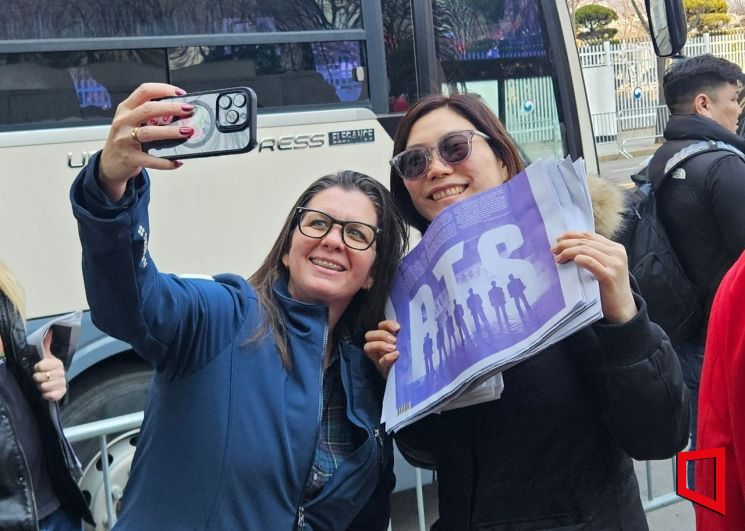 미국에서 온 리암씨(22)는 "요즘은 종이신문을 실제로 보기 어려운데, BTS 멤버들의 얼굴이 크게 인쇄된 신문을 팬들이 소중하게 들고 다니는 모습이 아주 인상적"이라며 "디지털로만 접하는 뉴스를 종이로 만질 수 있다는 점에서 '리미티드 에디션(한정판)'처럼 느껴진다"고 했다.