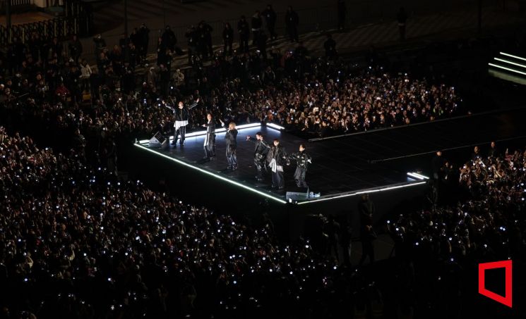 방탄소년단(BTS)이 21일 오후 서울 광화문 광장에서 정규 5집 '아리랑(ARIRANG)' 앨범 발매를 기념해 컴백 무대를 선보이고 있다. 방탄소년단은 오후 8시부터 약 1시간에 걸쳐 신곡과 히트곡 무대를 선사한다. 2026.03.21 사진공동취재단