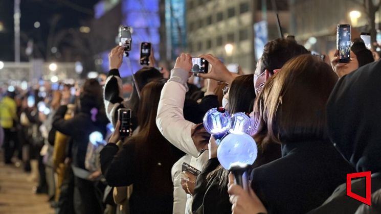 서울시에 따르면 이날 오후 8시 기준 광화문·덕수궁 일대에는 4만4000~4만6000명이 몰렸다. 공연을 앞두고 1시간 새 1만명 가까이 급증했다. 최대 26만명이 몰릴 것으로 예상됐지만, 경찰이 안전을 확보하기 위해 구역 단위 통제를 강화하자 인근으로 분산된 것으로 추정된다.