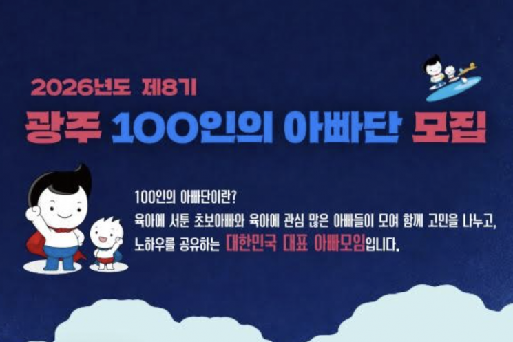 광주시와 인구보건복지협회 광주전남지회는 아빠들의 육아 참여를 활성화하고 가족 친화적 양육 문화를 확산하기 위해 '2026년 제8기 광주 100인의 아빠단'을 운영한다고 22일 밝혔다.