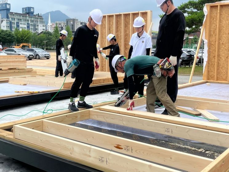 한국모빌리티고(옛 의정부공고) 건축디자인과 3학년 김시환군(19)은 건축이 좋아서 이 학교를 택했지만, 현장을 경험할 기회는 없었다. 수업은 이론 중심이었고 건설현장 취업 경로도 막연했다. 김군이 처음으로 전동공구를 잡고 집을 지어본 곳은 건설현장이 아니라 학교 운동장이었다.