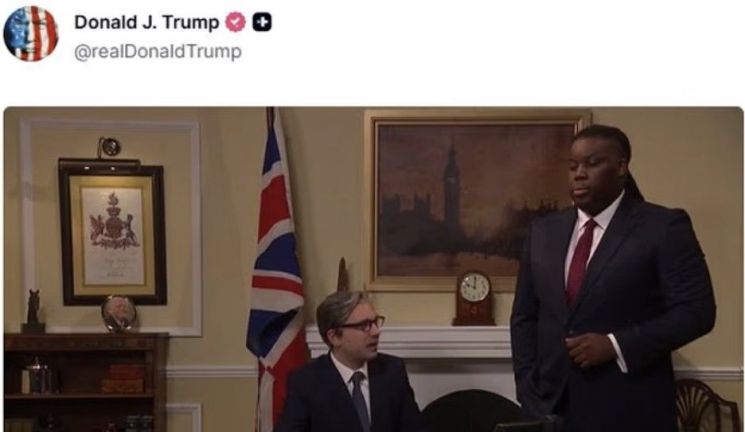 실제 트럼프 대통령은 트루스 소셜에 SNL UK 캡처 이미지를 올렸다. 다만 아무런 멘트도 남기지 않았다. 트럼프 대통령이 공유한 장면은 배우 조지 포에이커스가 스타머 총리로 분장한 채 국무를 보는 모습이었다. 영상을 보면, 스타머 총리는 트럼프 대통령으로부터 전화가 오자 "도널드가 나에게 소리치면 어떡하지? 뭐라고 말해야 하지?"라고 안절부절못한다.