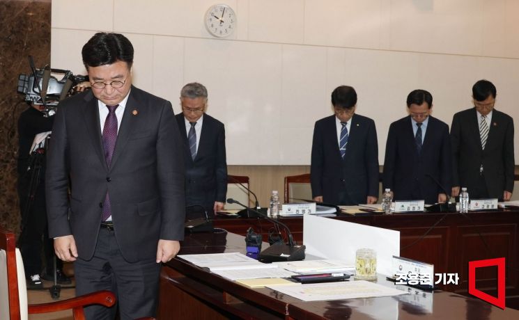 윤호중 행정안전부 장관이 23일 서울 종로구 정부서울청사에서 열린 '2026 중앙지방정책협의회' 전체회의에 참석해 대전화재 희생자에 대해 묵념하고 있다.