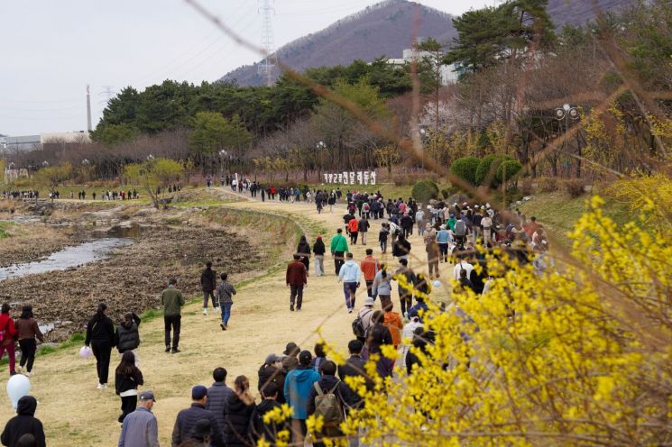 행사는 1부 집결지 행사와 2부 도착지 행사로 나뉘어 진행됐다. 참가자들은 개회식과 준비체조를 마친 뒤 오전 10시 정관중앙공원을 출발해 달음교를 반환점으로 하는 약 2㎞ 구간을 함께 걸었다.
