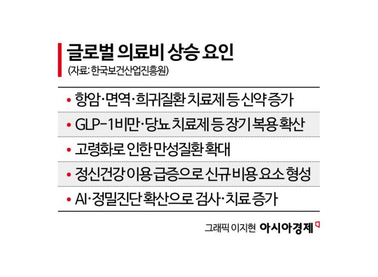기술 확산이 오히려 비용을 증가시킬 것이란 분석도 나온다. AI 기반 진단과 의료서비스 관리가 확대되면서 정확도와 접근성은 개선되고 있지만 행위별 수가 체계에서는 이러한 생산성 향상이 비용 절감으로 이어지지 않는 구조다. 오히려 정밀 진단 확대가 추가 검사 및 치료로 이어지며 총 의료비를 높일 가능성이 커진다. 의료비 상승 부담에 대응하기 위해 이미 글로벌 보험사들은 보험 보장 축소와 본인부담금 확대를 검토하고 있다. 국내에서도 약제비 부담이 확대되는 흐름은 나타나고 있지만, 정부의 약가 통제와 건강보험 체계로 인해 가격이 급등하기보다는 재정 부담이 누적되는 결과로 이어지고 있다.