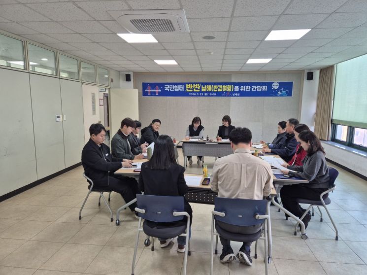경남 남해군이 오는 4월 1일부터 전격 시행되는 지역사랑 휴가 지원제(반값여행)인 '국민 쉼터 반반 남해'의 성공적인 안착을 위해 소상공인연합회를 비롯해 군청 내 유관 부서들이 참여하는 합동 간담회를 개최했다.