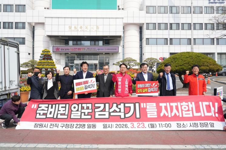 경남 창원시 행정 일선에서 시민과 함께 호흡해왔던 전직 구청장 23명이 24일 오전 창원시청에서 기자회견을 열고 김석기 창원시장 후보에 대한 전폭적인 지지를 선언했다.